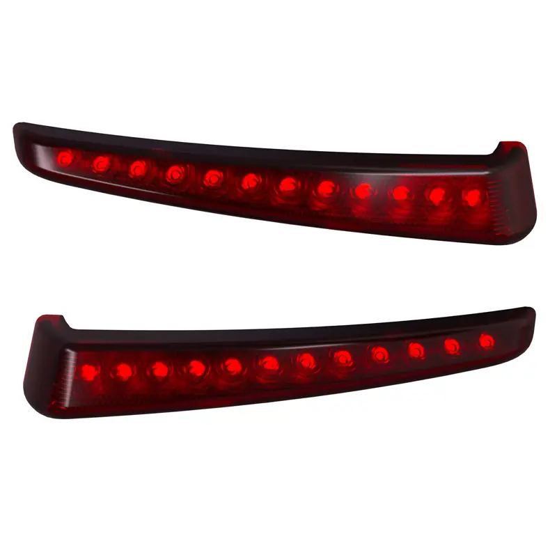 Utilizing super bright red LEDs behind a red or smoked lens the saddlebag lights produce a contrasting red running light with full intensity brake and turn signal preview. Plus we have other products in the works. BRAKE RUNNING TURN SIGNAL.